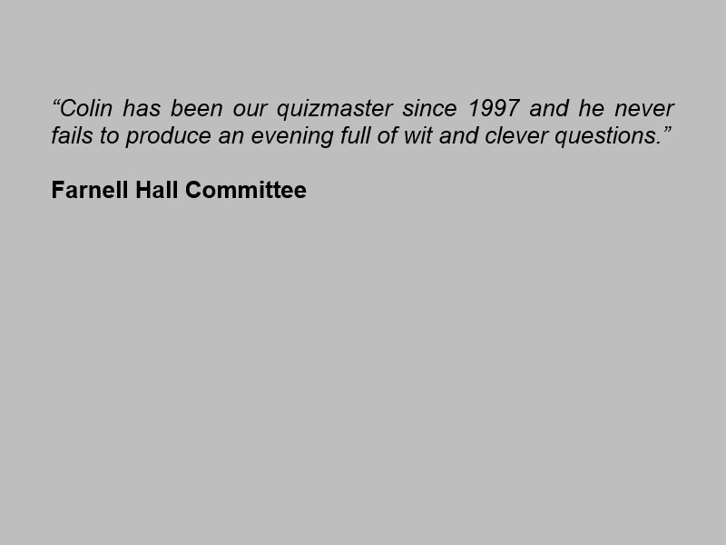 Colin is the reigning Superscot champion and has been presenting quizzes for almost thirty years.